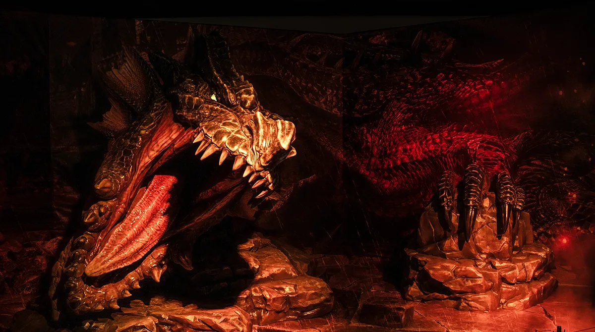 和禁忌魔物黑龍對峙的體驗為大狩獵展畫下句點。※黑龍的展示造型為局部呈現非全身